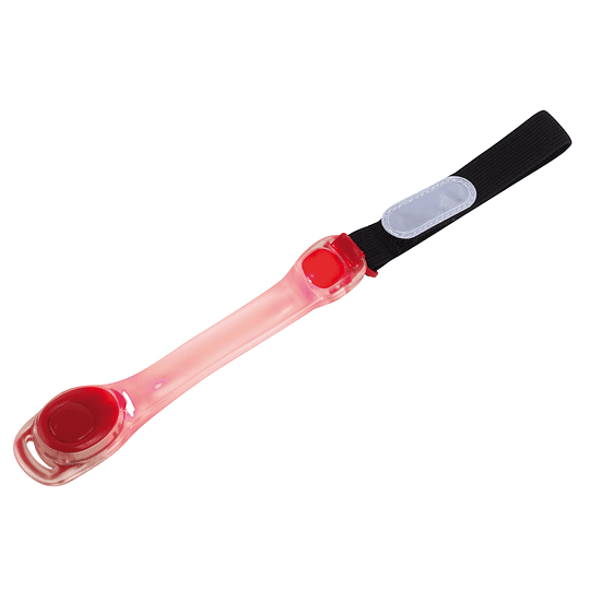 Bracelete com luz led com dois modos (fixa ou intermitente), bracelete translucida com bandas refletoras para maior visibilidade. Área de Impressão: 20 x 10 mm