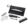 Conjunto de ferramentas, 19 peças inclui chave de fendas com 10 pontas diferentes, 3 chaves hexagonais com mosquete em bolsa pratica com velcro. Área de Impressão: 50 x 10 mm