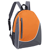Mochila bolsa frontal com fecho vertical, compartimento principal cpm fecho, bolsa lateral de malha, costas e alças reforçadas. Área de Impressão: 110 x 60 mm