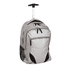 Mochila trolley, pequena bolsa com fecho, bolsa frontal com organizador, compartimento principal com parte acolchoada para portátil, bolsas laterais de rede, compartimento com fecho para guardar as alças, com 2 rodas, inclui bolsa para roupa. Área de Impressão: 200 x 45 mm