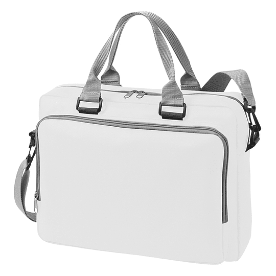 Compartimento principal com fecho e bolsa cozida. Grande bolsa frontal com fecho e bolsos organizadores. Pegas e alça destacável. Área de impresssão: 22 x 20 cms